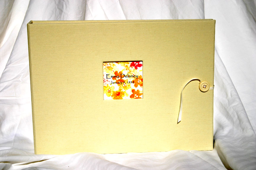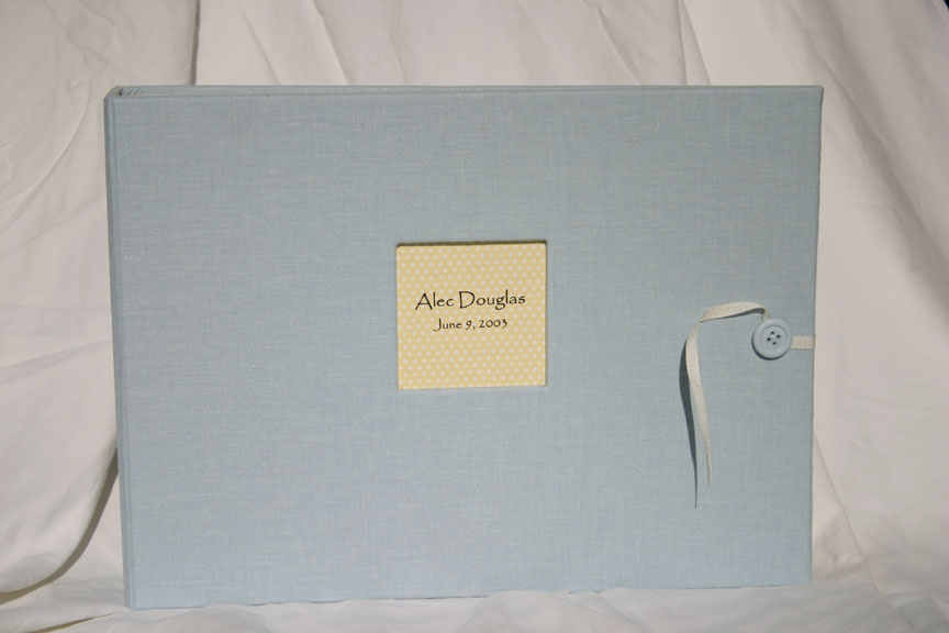 With three linen fabric choices to choose from, a button closure, and a window on the cover for a photograph or custom personalization (baby's name and birth date for $5.00), you can create a classic and unique baby book that will help you to remember these special baby days. These baby books are filled with monthly calendar pages to record those special occasions and exciting firsts, along with areas to journal about those memorable moments and spaces for pictures. You will receive a package of "Fun Firsts" which includes individual pages to document first holidays, first haircut, etc. Also included are pages to reflect on all the events leading up to the big day!